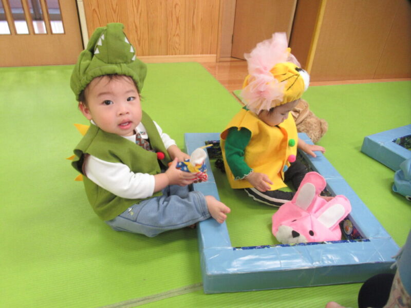 最初は衣装に慣れてもらうために「どれがいい?」「好きなの着ていいよ~」と声をかけて自分達で選んでもらっていました。日によって「こっち!」と楽しんで選んでいましたよ♪