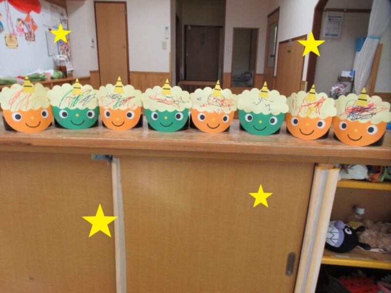 次は節分だね!作ったお面で楽しく集会に参加しようね☆