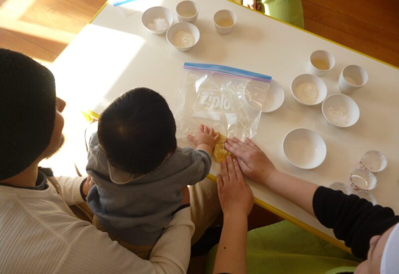 オーブンで焼いている間は、玩具で遊んだりお部屋を探検したり・・・
