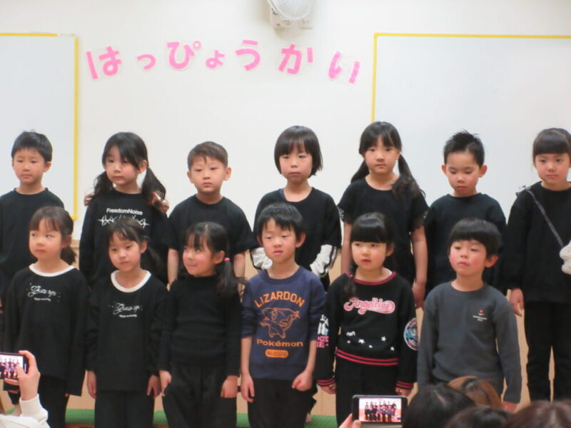 初めての発表会で、目の前に沢山の人がいる光景に驚く姿もありましたが、しっかりとお返事や体操をすることができました💕