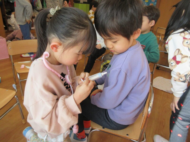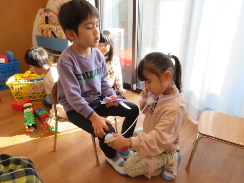 手洗い・うがい・検温と朝の支度をサッと済ませると、早速好きな遊びを見つけておともだちと一緒に遊び始めます