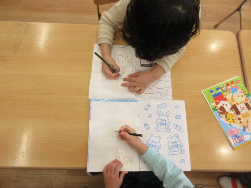 上手に絵を写しとり、自分でぬりえを作っているおともだちもいますね
