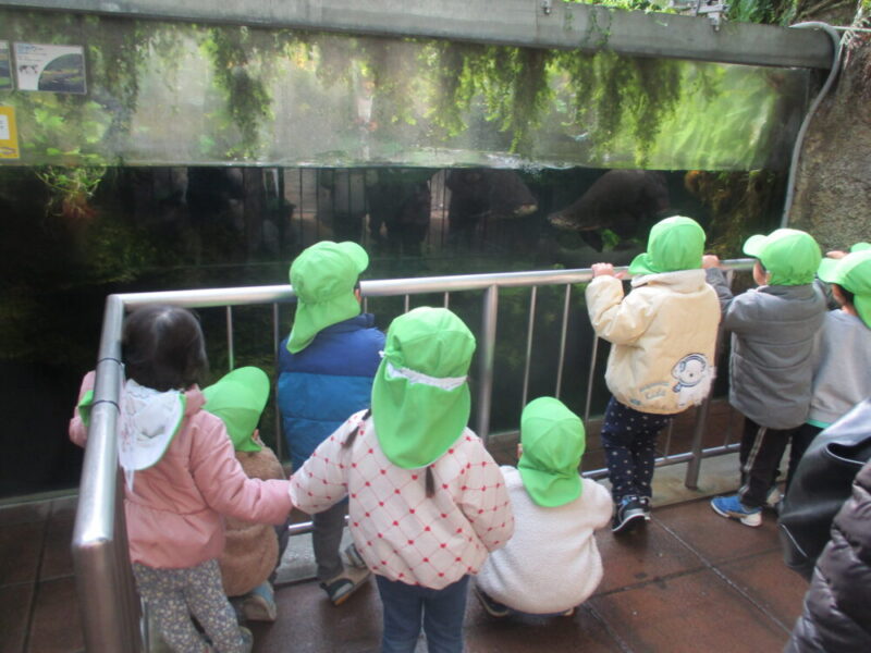 以前から保育室には生物園にいる生き物のイラストが貼ってあり、予習バッチリでした。「〇〇いるかな~」「探してみよう」と期待を膨らませる子ども達です。