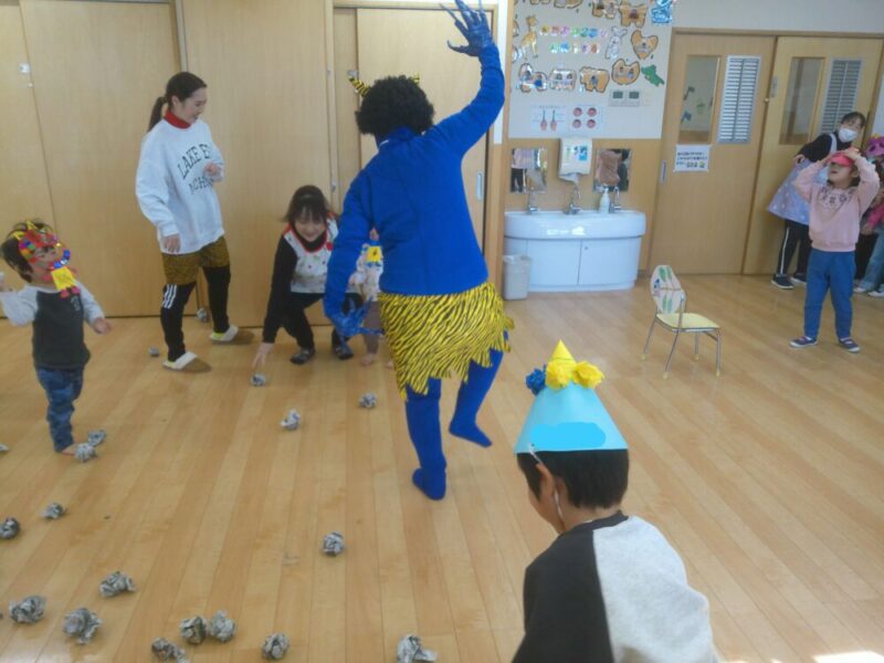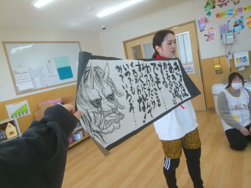 紙芝居を楽しんだ後、鬼がお部屋にやってきました!
