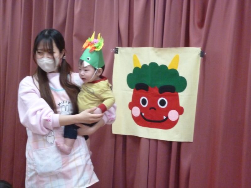 まずは、”節分”って何をする日?どんな日?というお話をみんなで聞きます👂