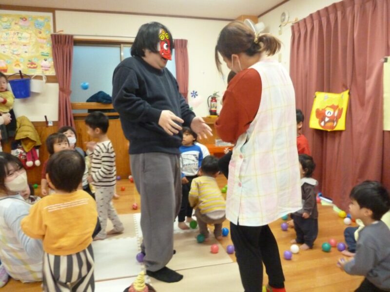 みんなで豆まきを楽しんでいると……最後になんと大きな鬼が登場😮