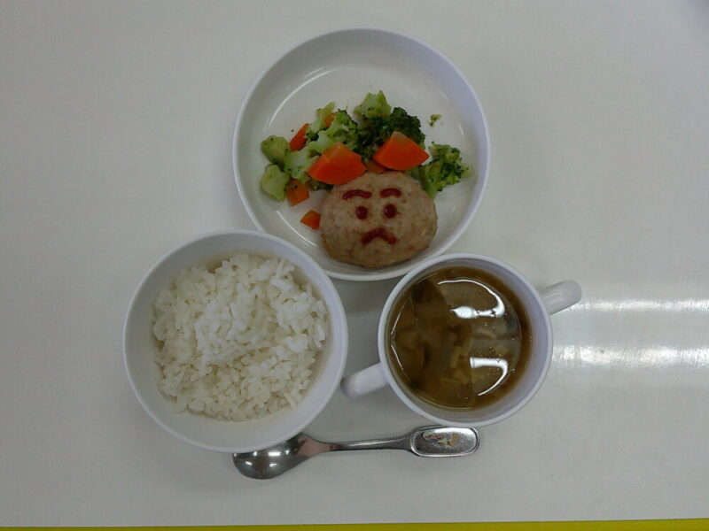 また、この日の給食は鬼ハンバーグでした♪とても美味しかったよ‼