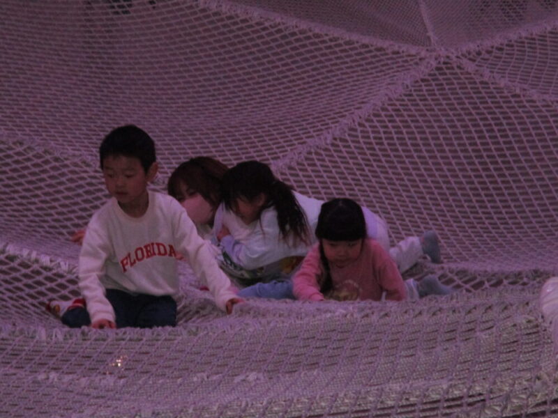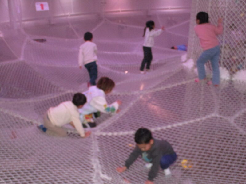 待ちに待ったアスレチックではバランスを取るのも難しい網の上でバランスを取りながら走り回って楽しみました!