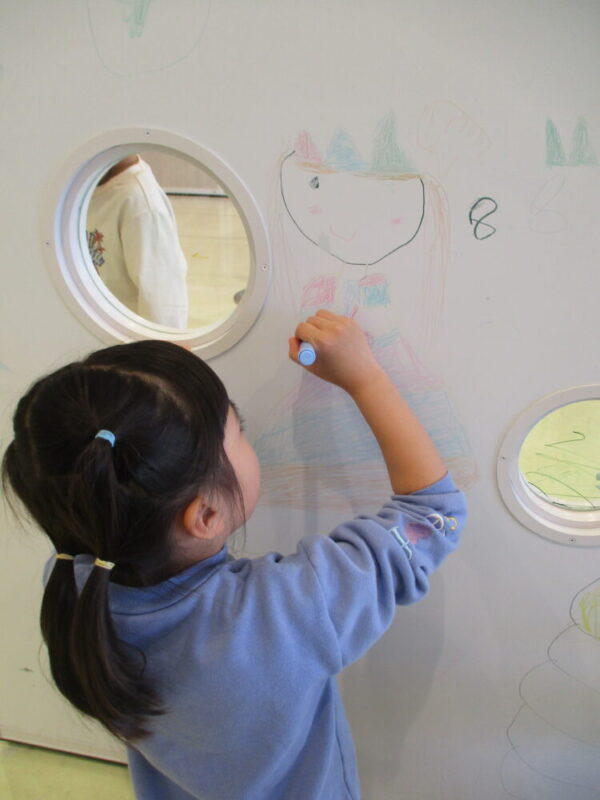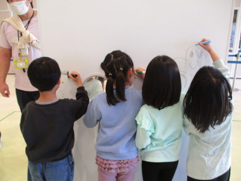 最後は自由に床や壁に絵を描ける体験をしました。