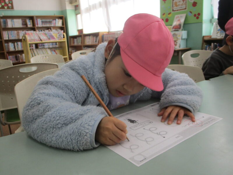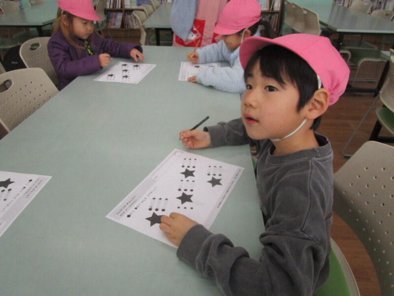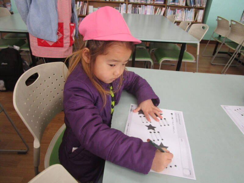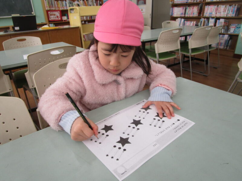 小学校の図書室で線のお勉強をしました。