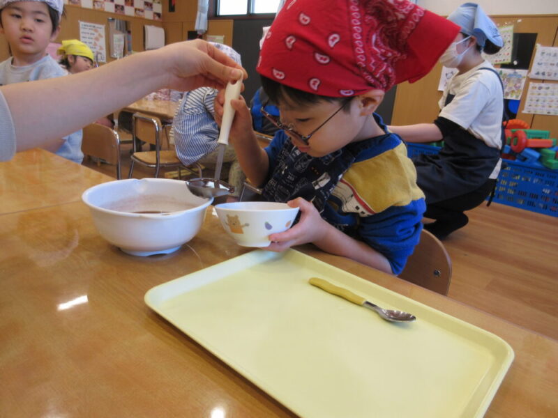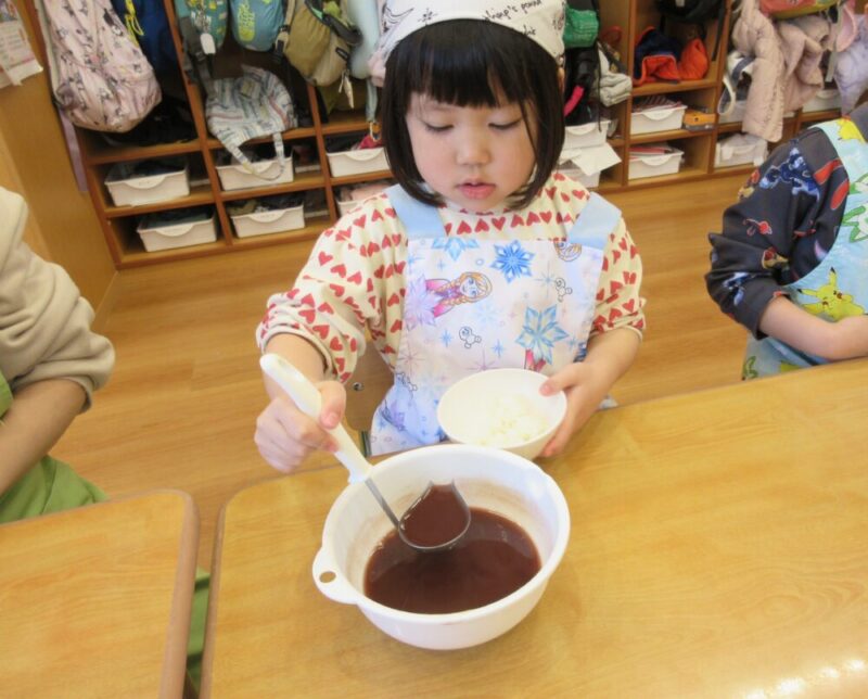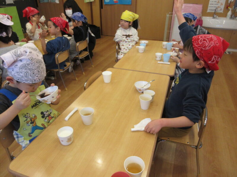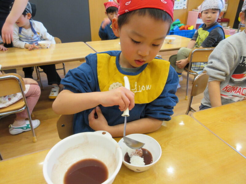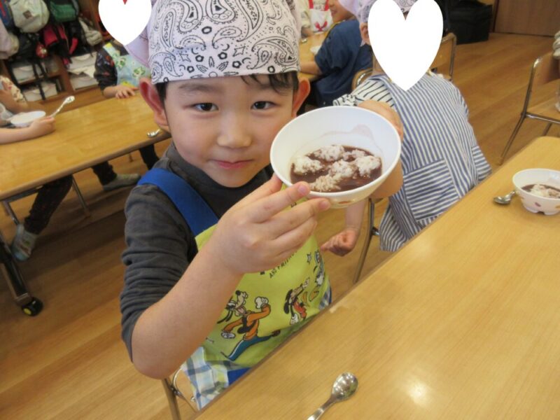 だまこもち風おしるこを作りました ~西新井南園・ひまわり組~