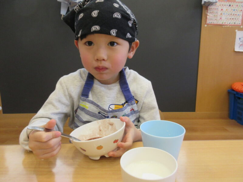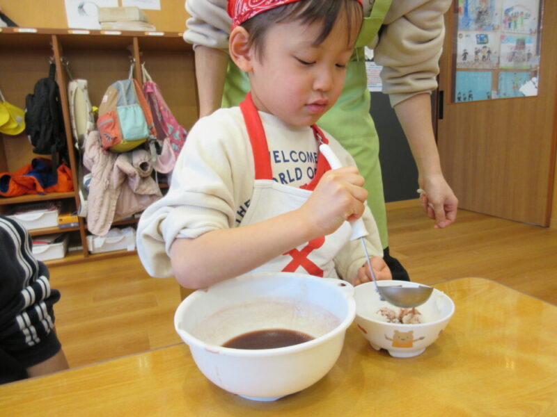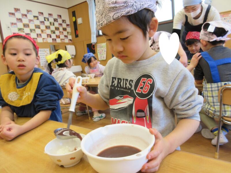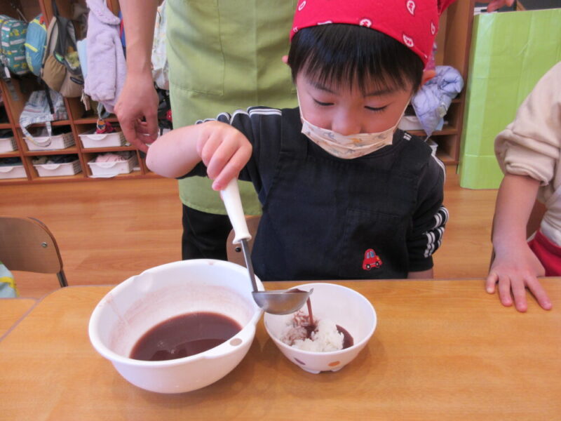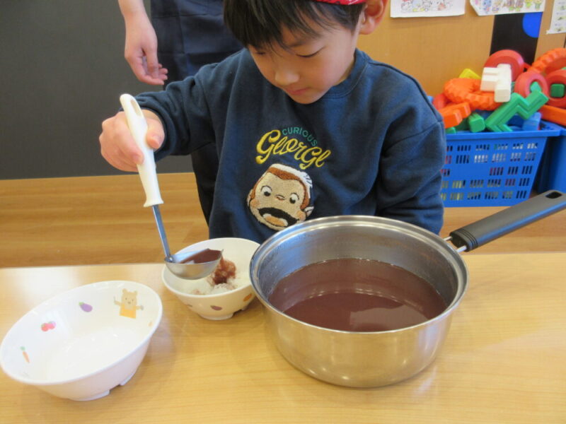 だまこもち風おしるこを作りました ~西新井南園・ひまわり組~
