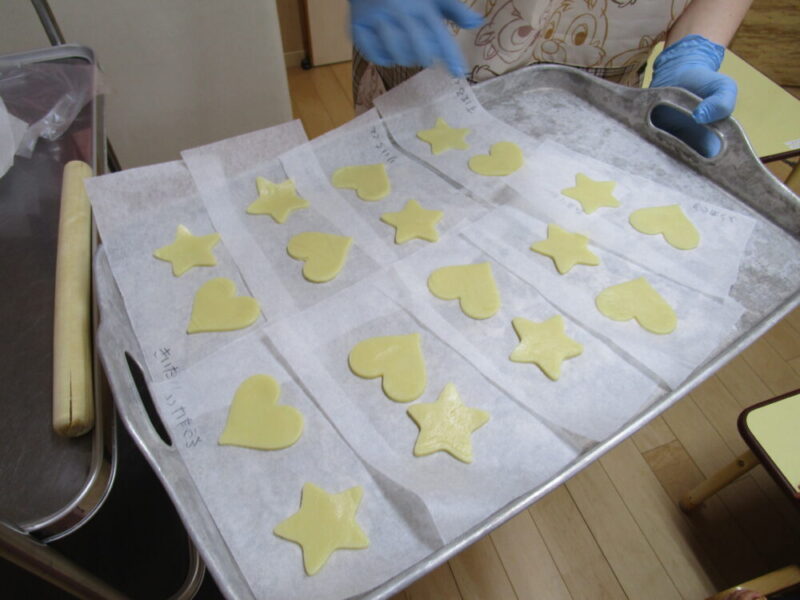 みんなが抜いたクッキーができました!給食室で焼いてもらいます。