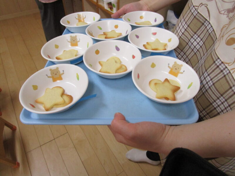 嬉しそうに自分で型抜きしたクッキーは残さず食べていました。