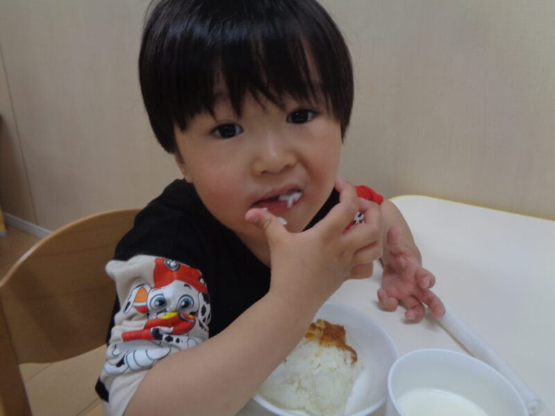 みんなで調理室に行き、調理さんへバトンタッチ!「おねがいしまーす!」と大きな声で仕上げをお願いをしました。