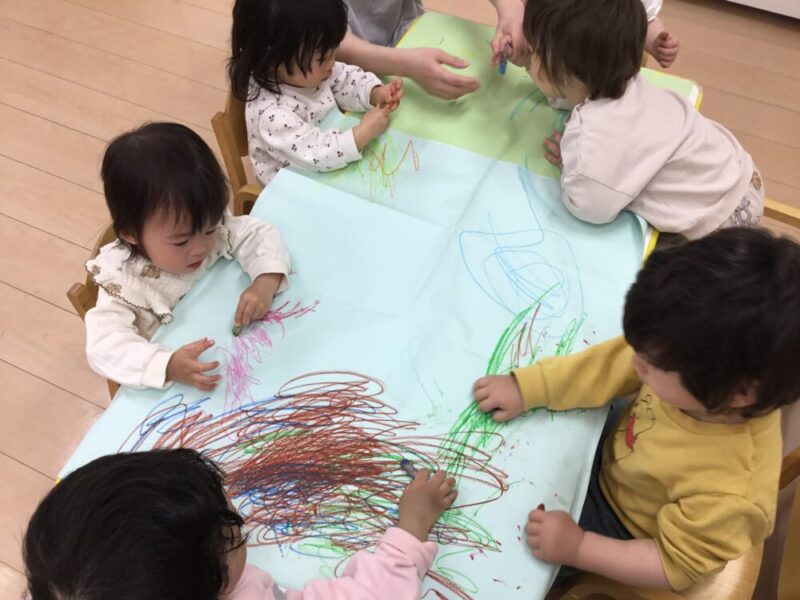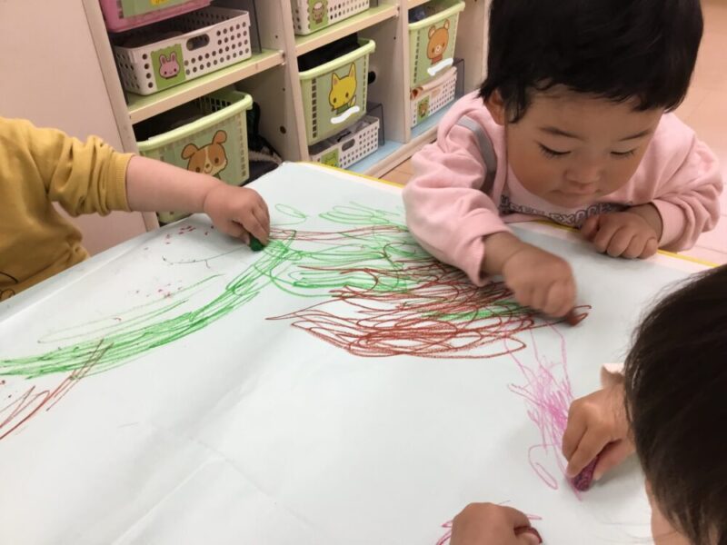 その後は、大きな模造紙にみんなで一緒にお絵描きをしました!🖍