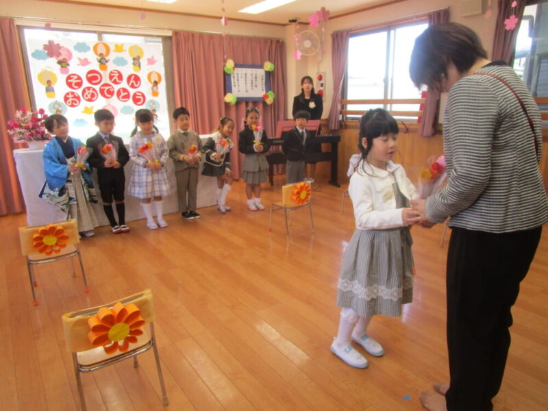 3月14日、お天気良く、暖かい中で卒園式を行いました。
