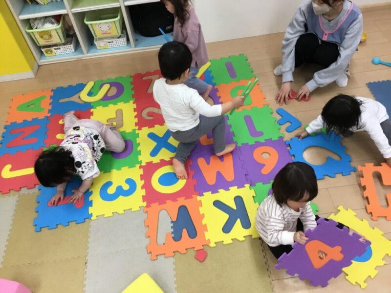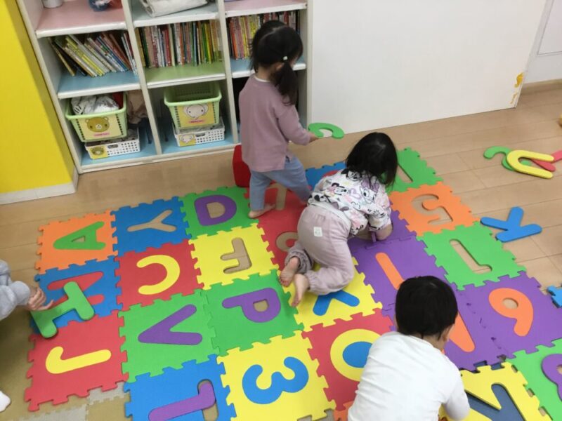 先日、アルファベットのジョイントマットで遊ぶと、大喜びの子どもたち。