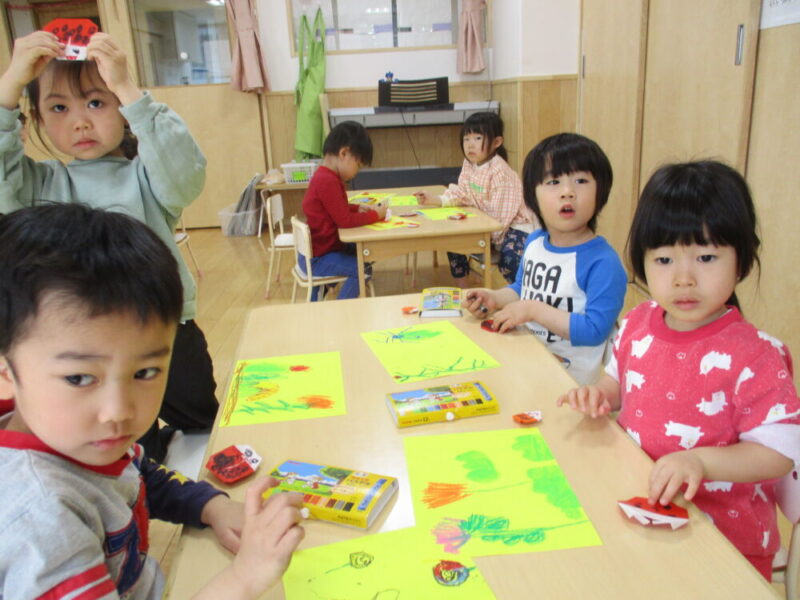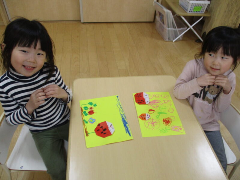 西国分寺園 ゆり組 折り紙制作「てんとうむし」
