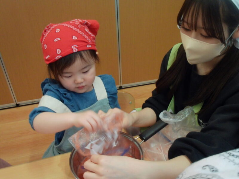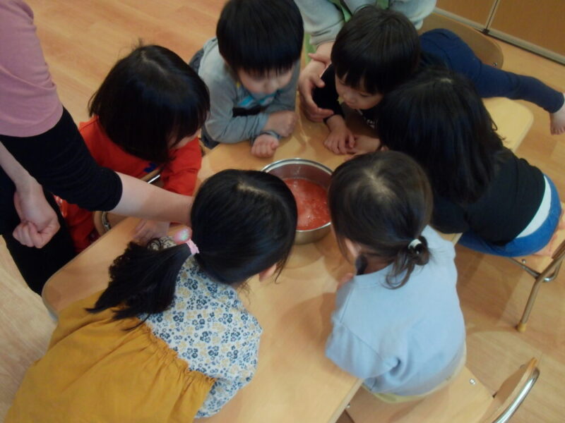 潰し終えると、「なんかジュースみたいだね!」とお友だちとお話をしている姿も見られました🍹