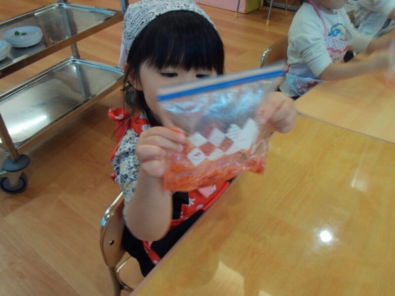 「美味しくなーれ!」と皆でおまじないをかけて、お給食さんに渡しました🌟