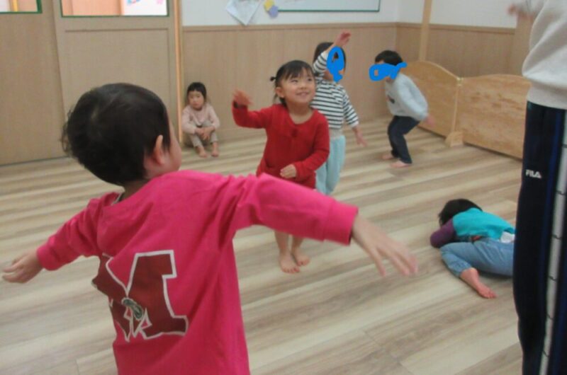 その前に体操するよ!!「なにが~できるかな~♪♪」