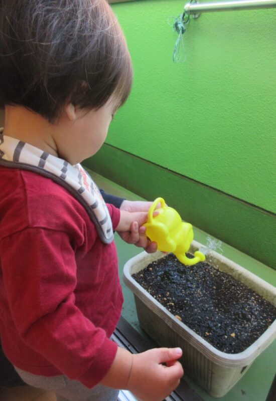 水やりをして…
