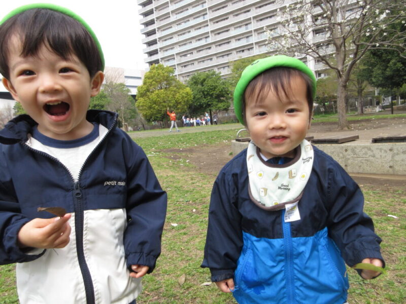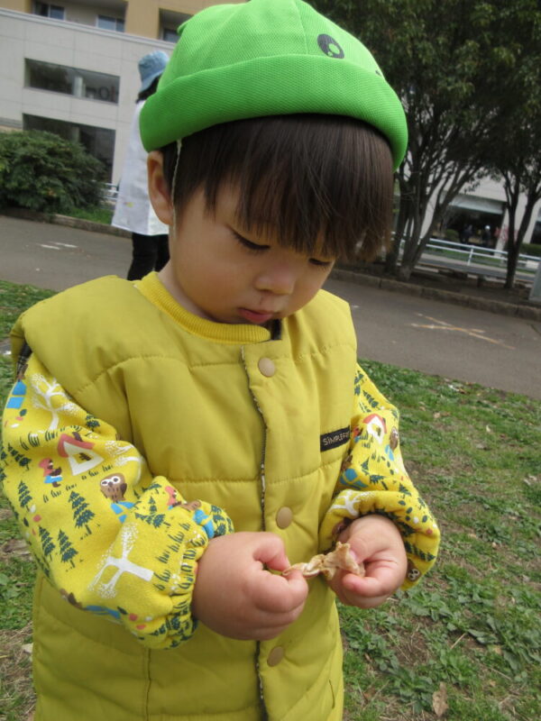 落ち葉を見つけると「みてみて!」と保育者に見せに来てくれます☆