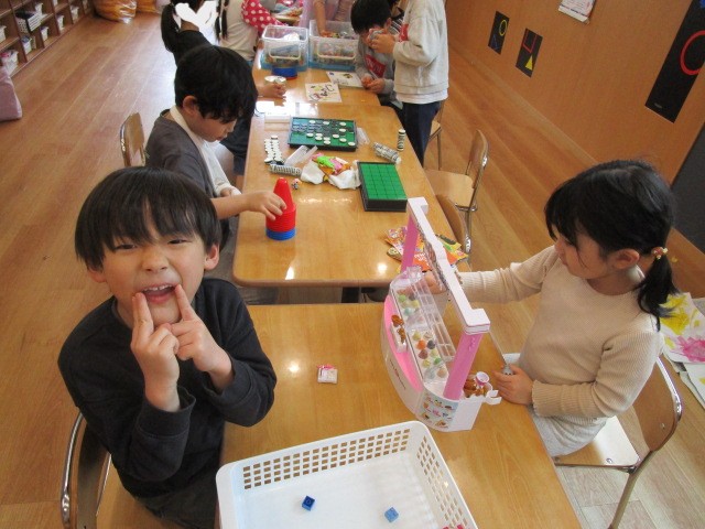 「いらっしゃいませ~」とアイス屋さんごっこをしたりと、毎日いろんな玩具で遊んで楽しんでいます!!