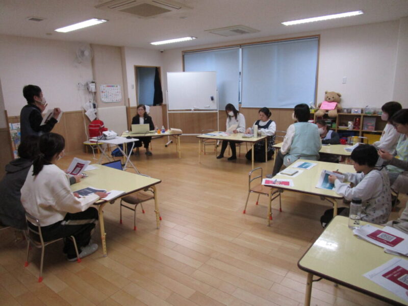 この研修には、日頃から関わりのある近隣の保育園にも参加を促しお越しいただき、当園職員とともに講義やグループワークを通して一緒に考え学びました。